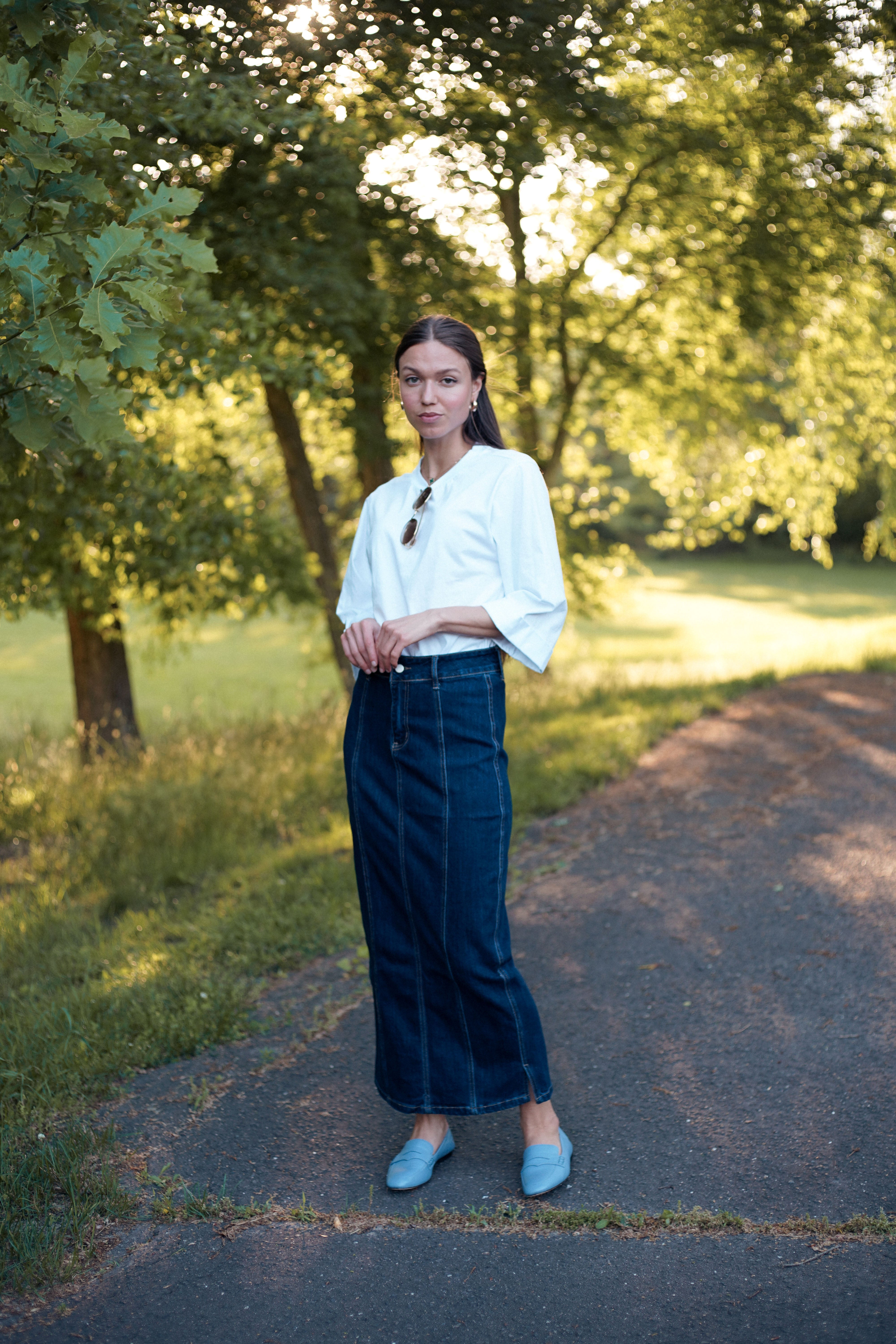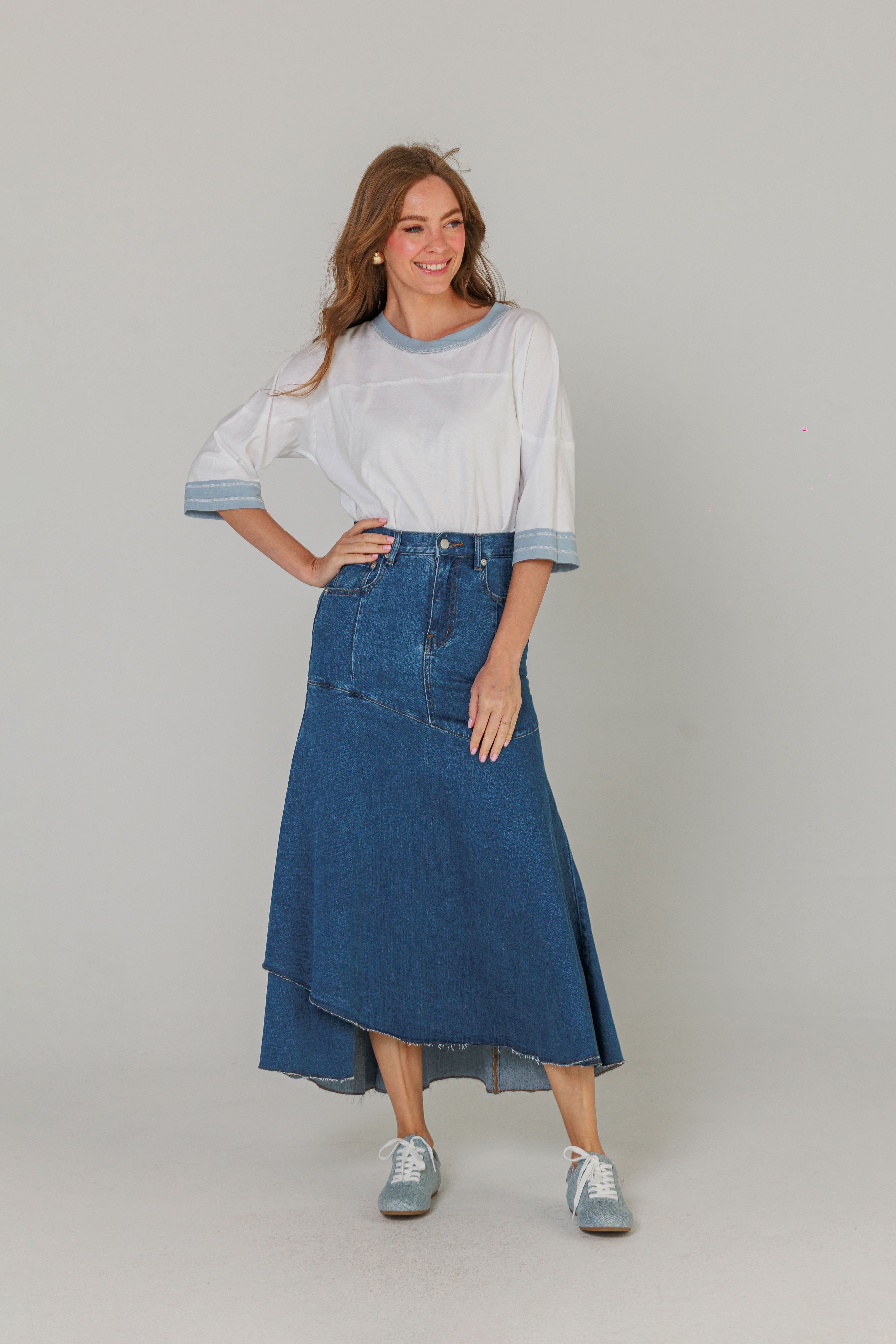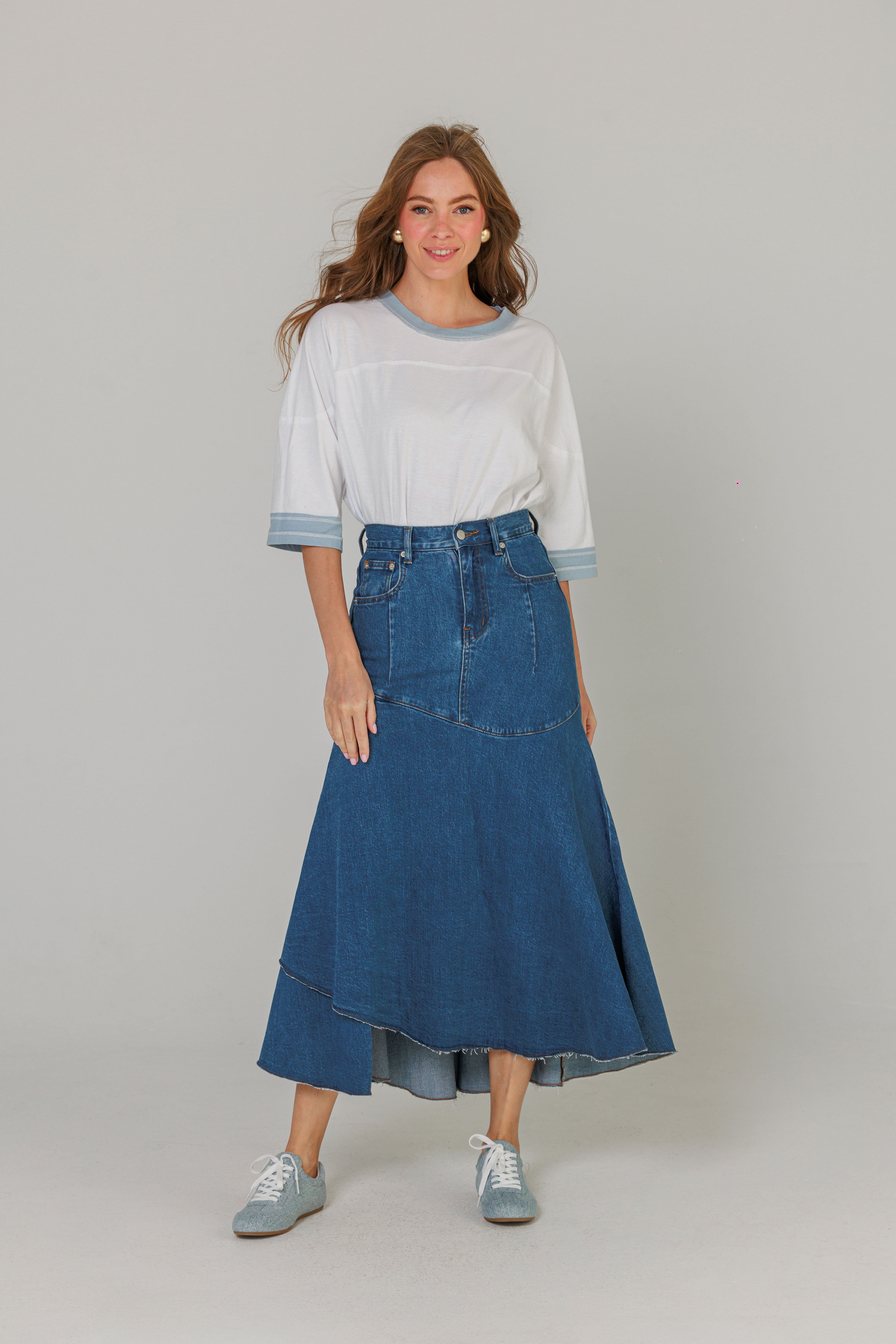Blue Panel Denim Skirt