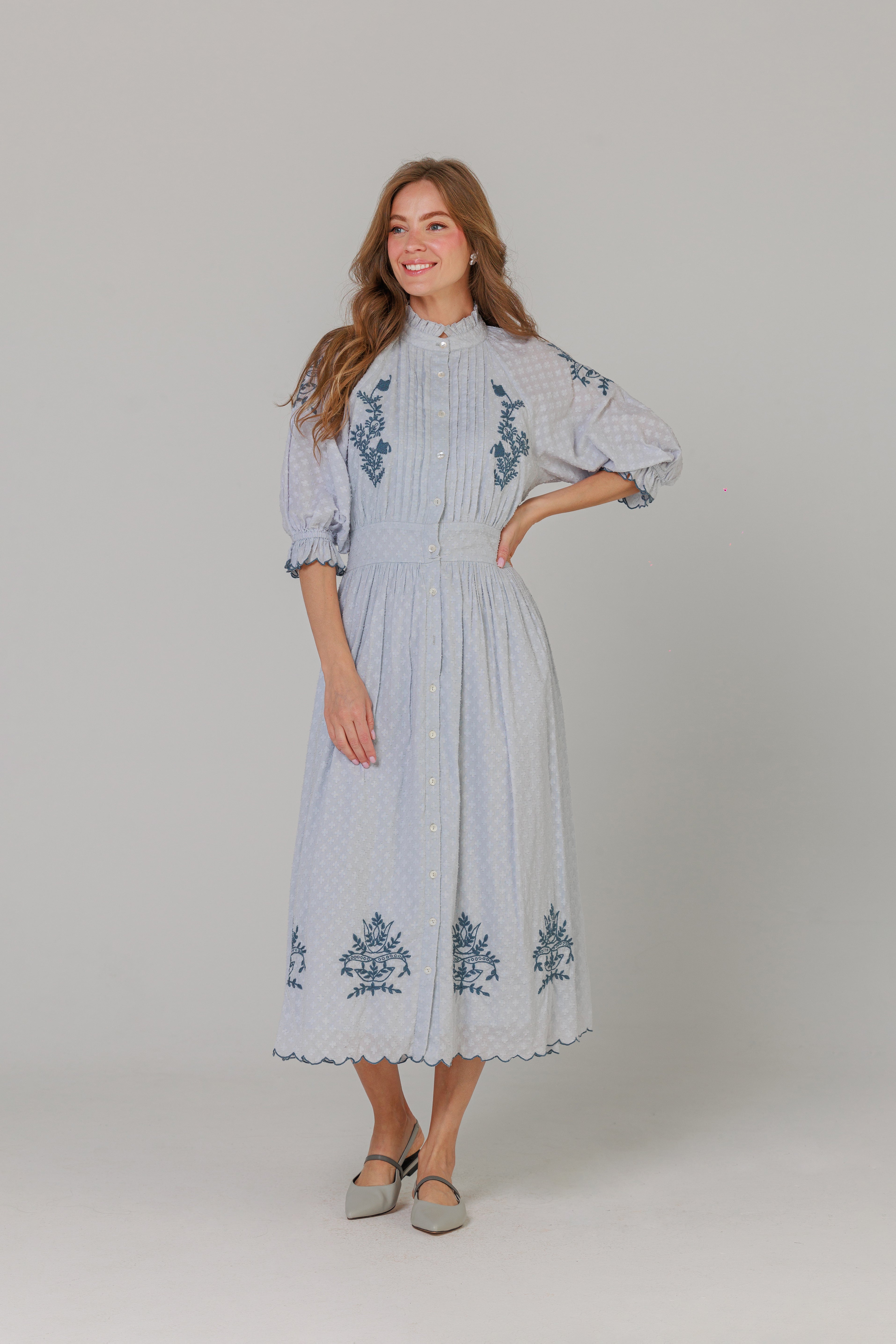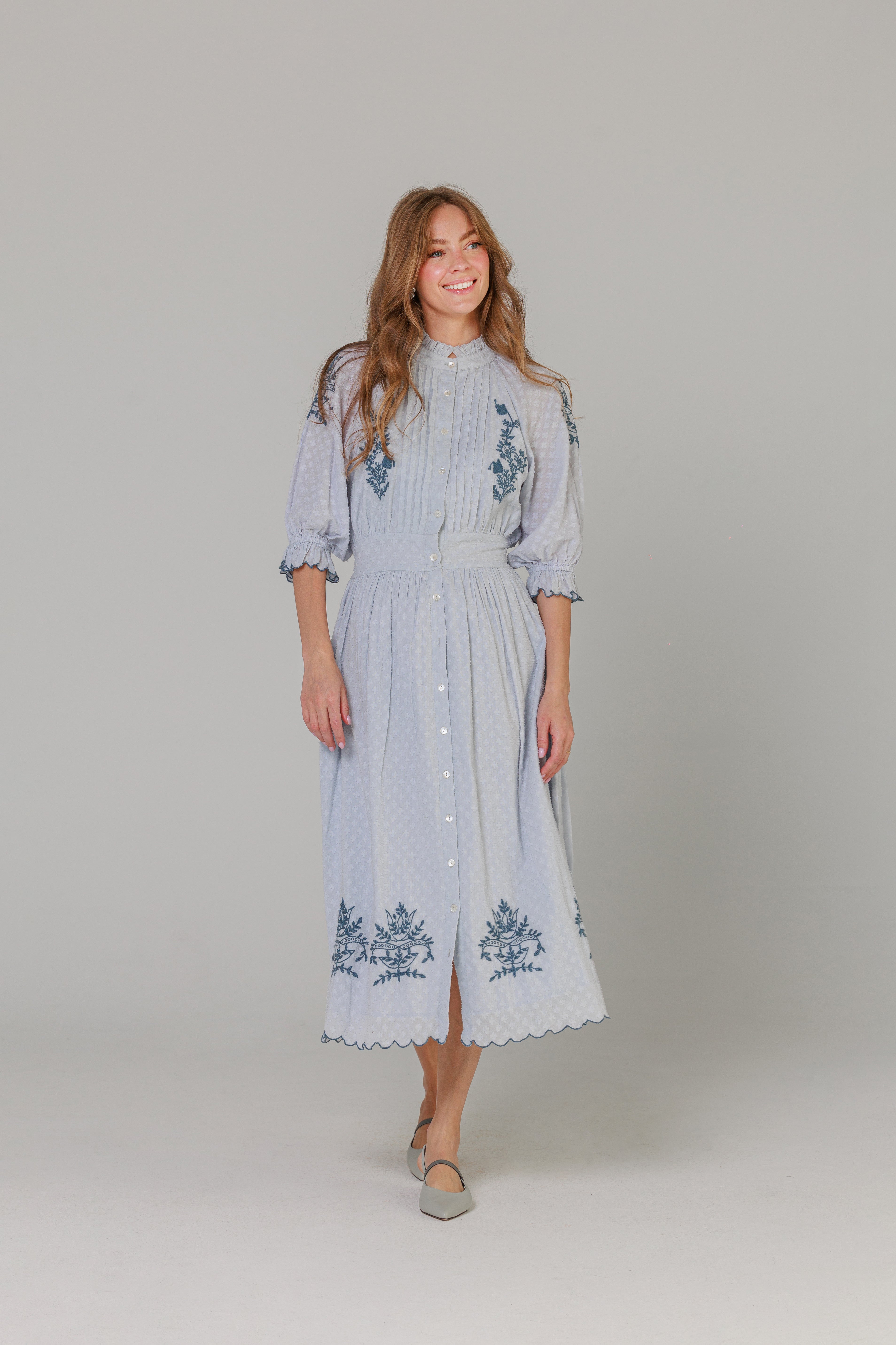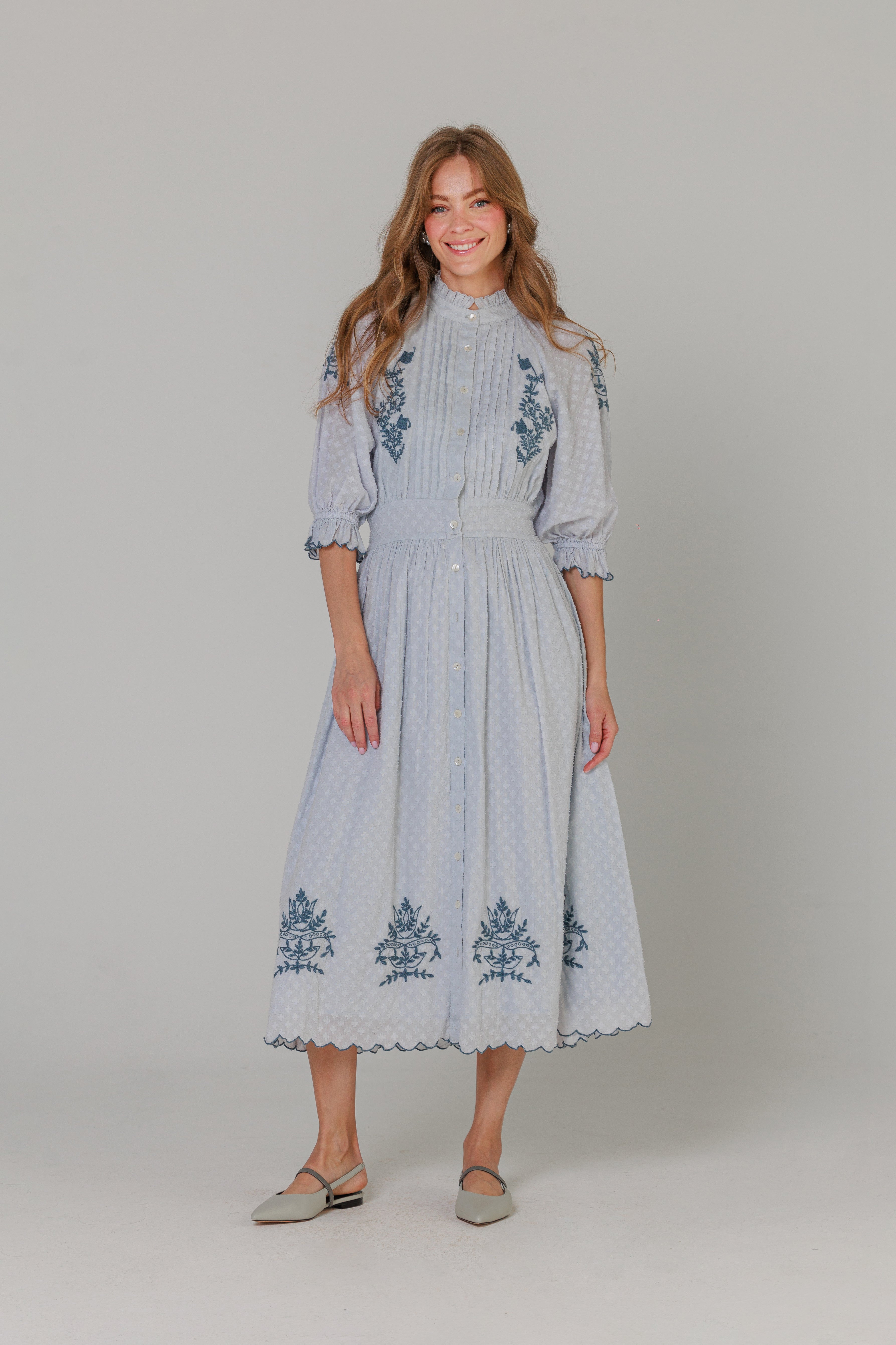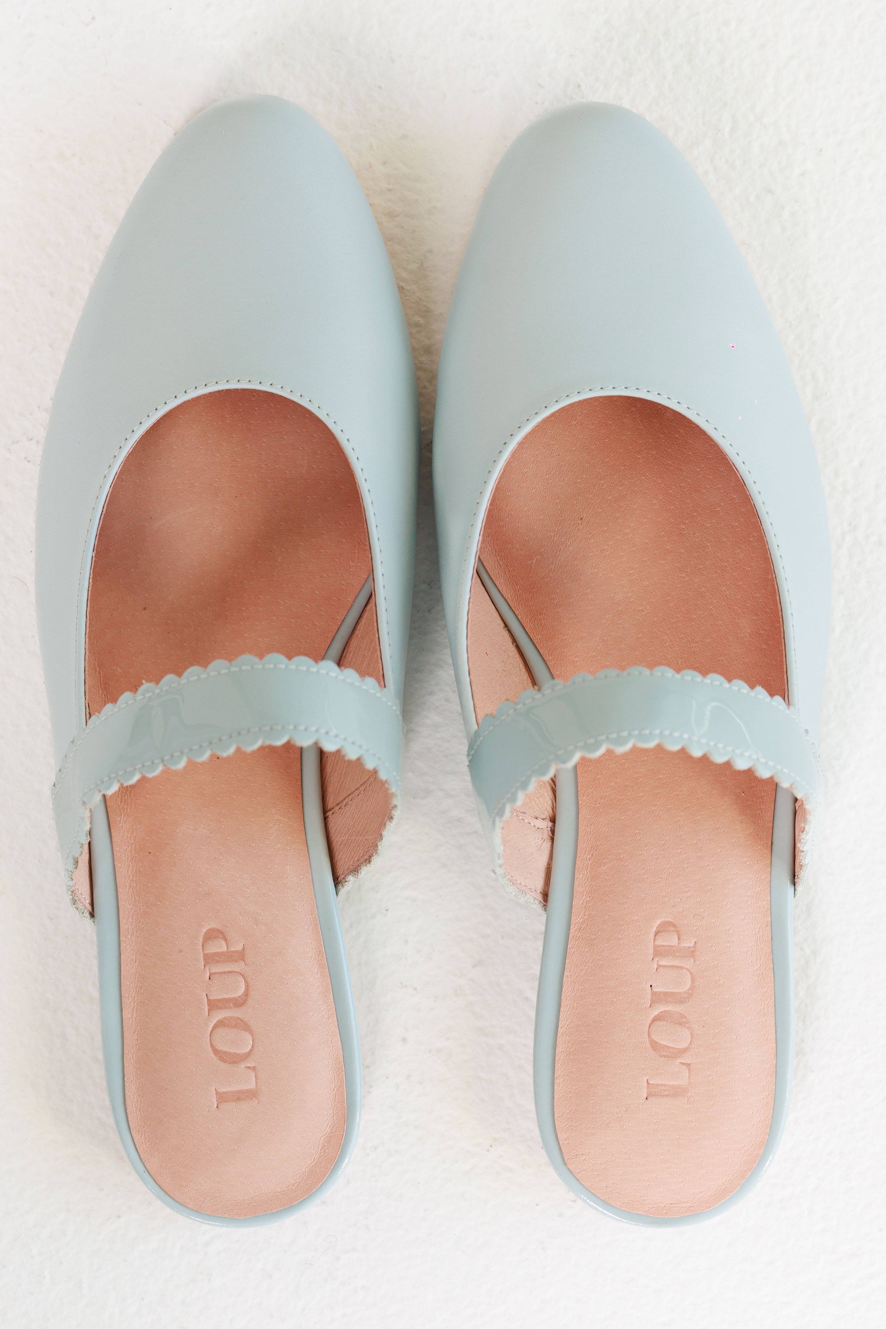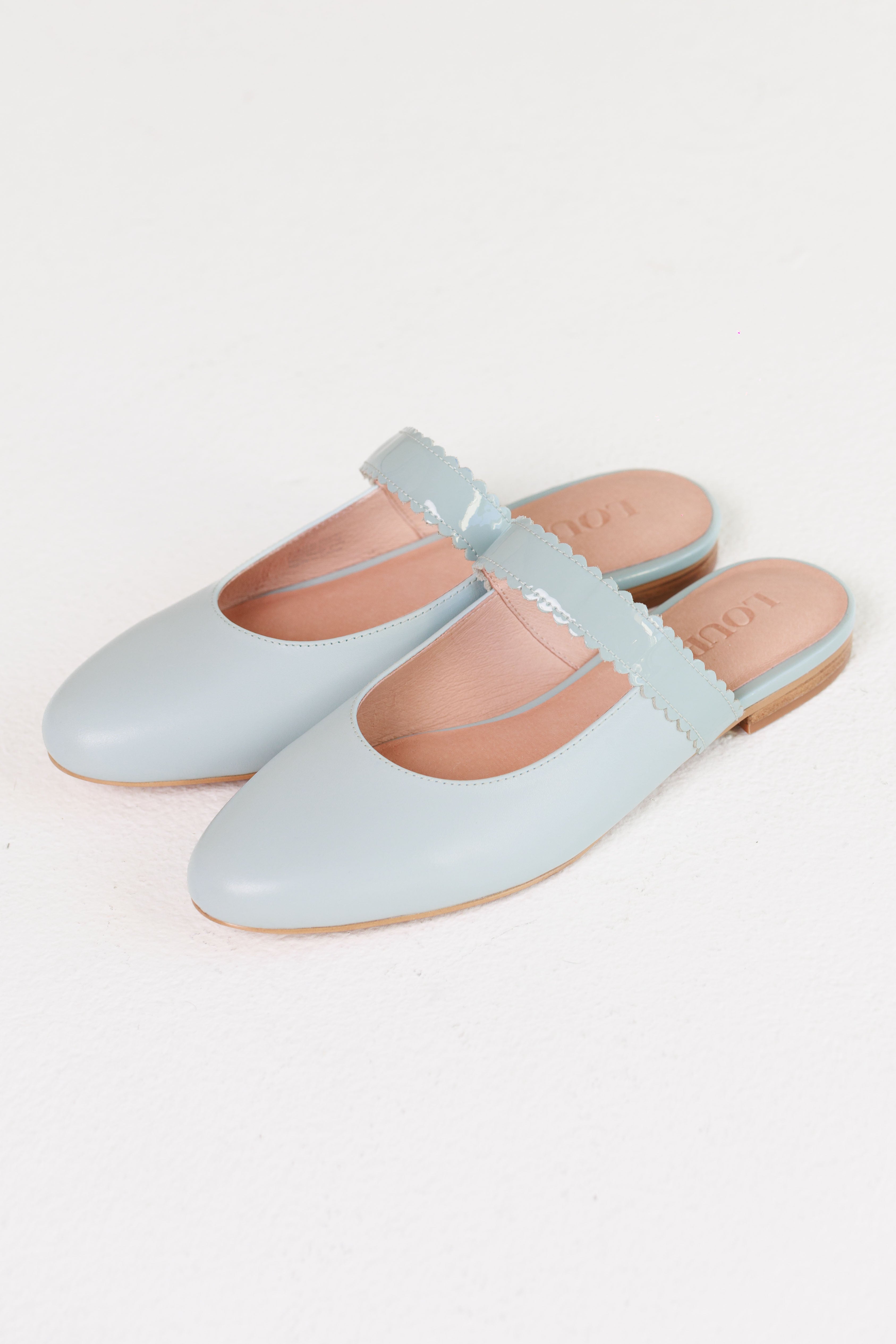 Blue Scalloped Mules