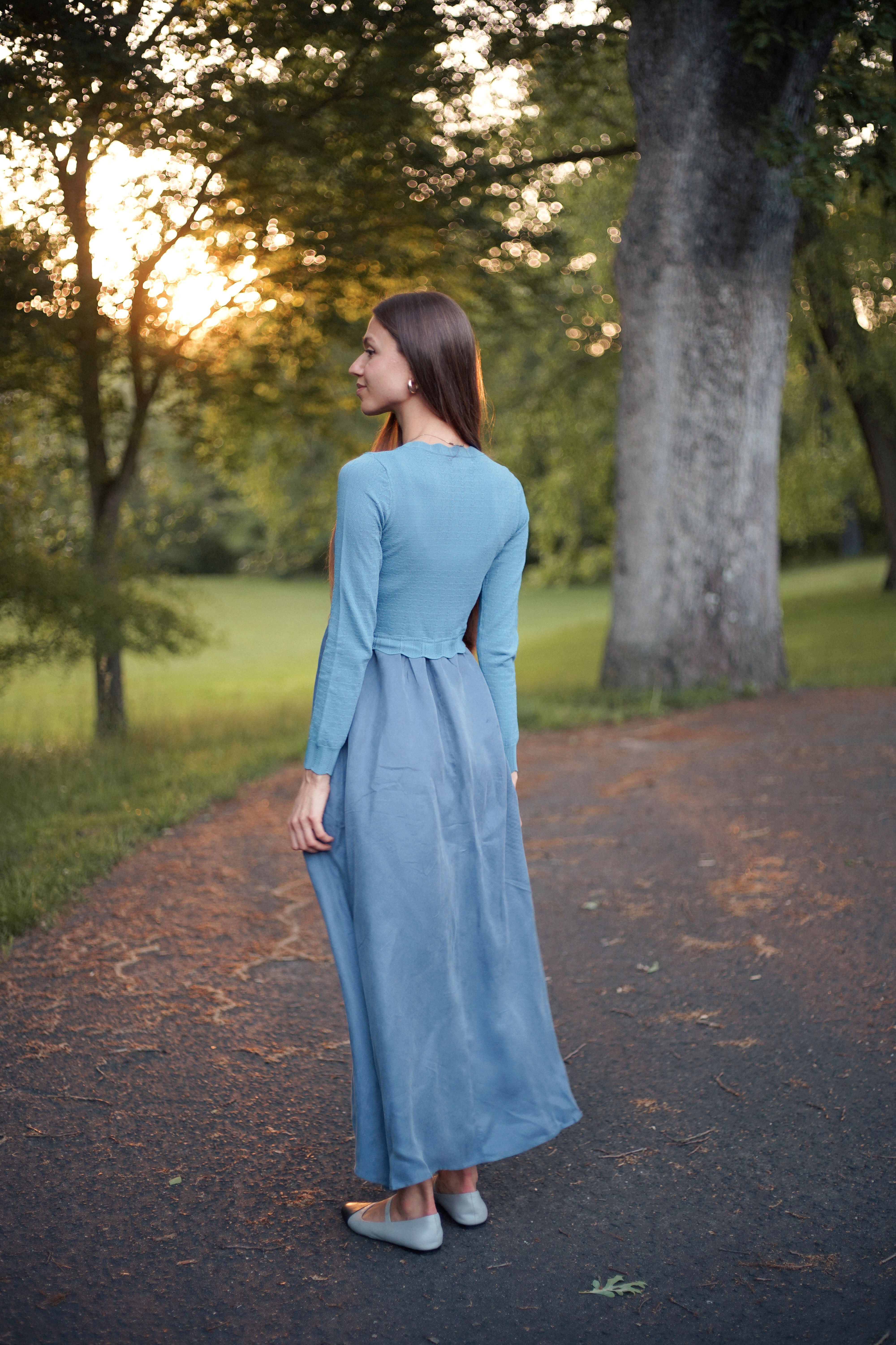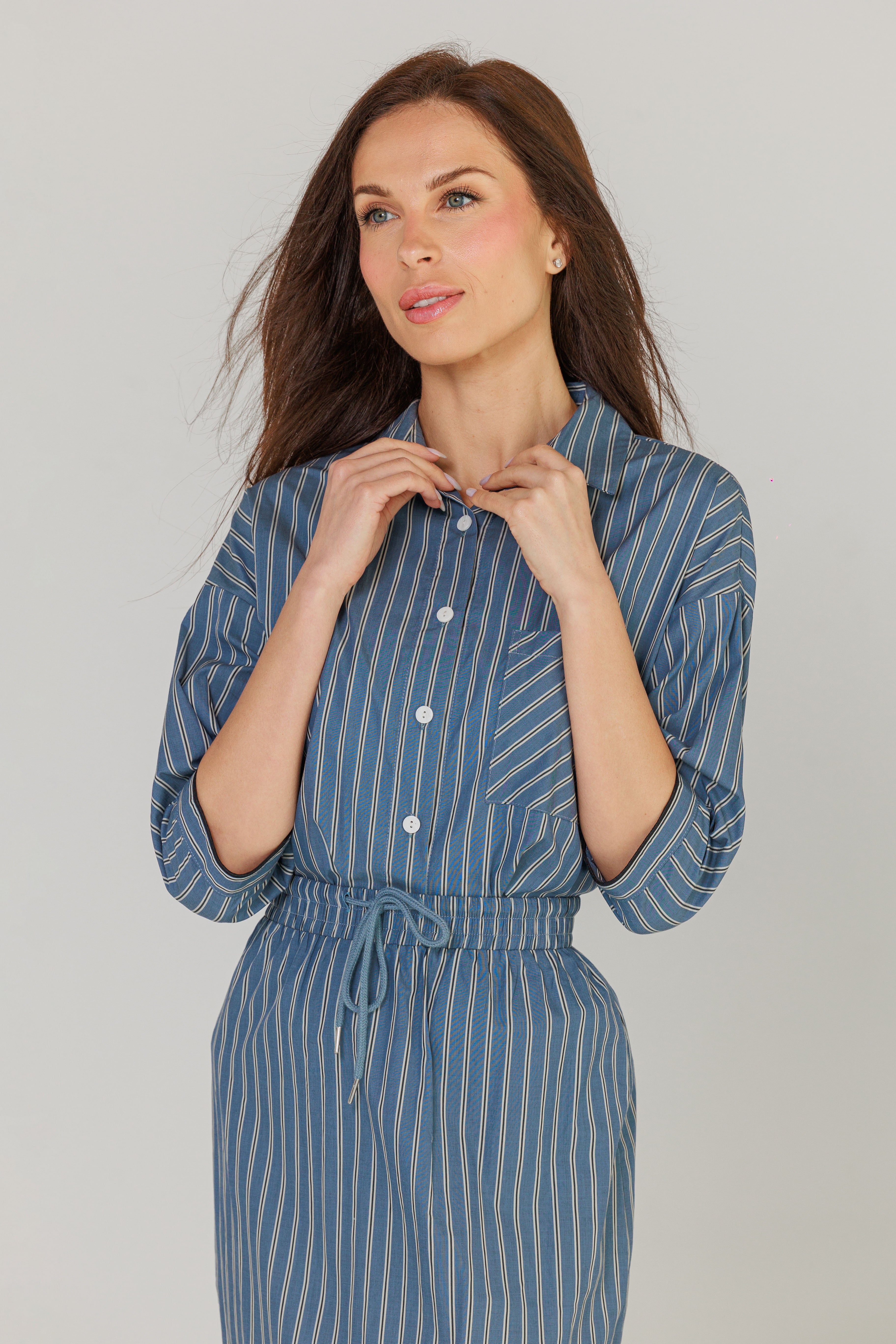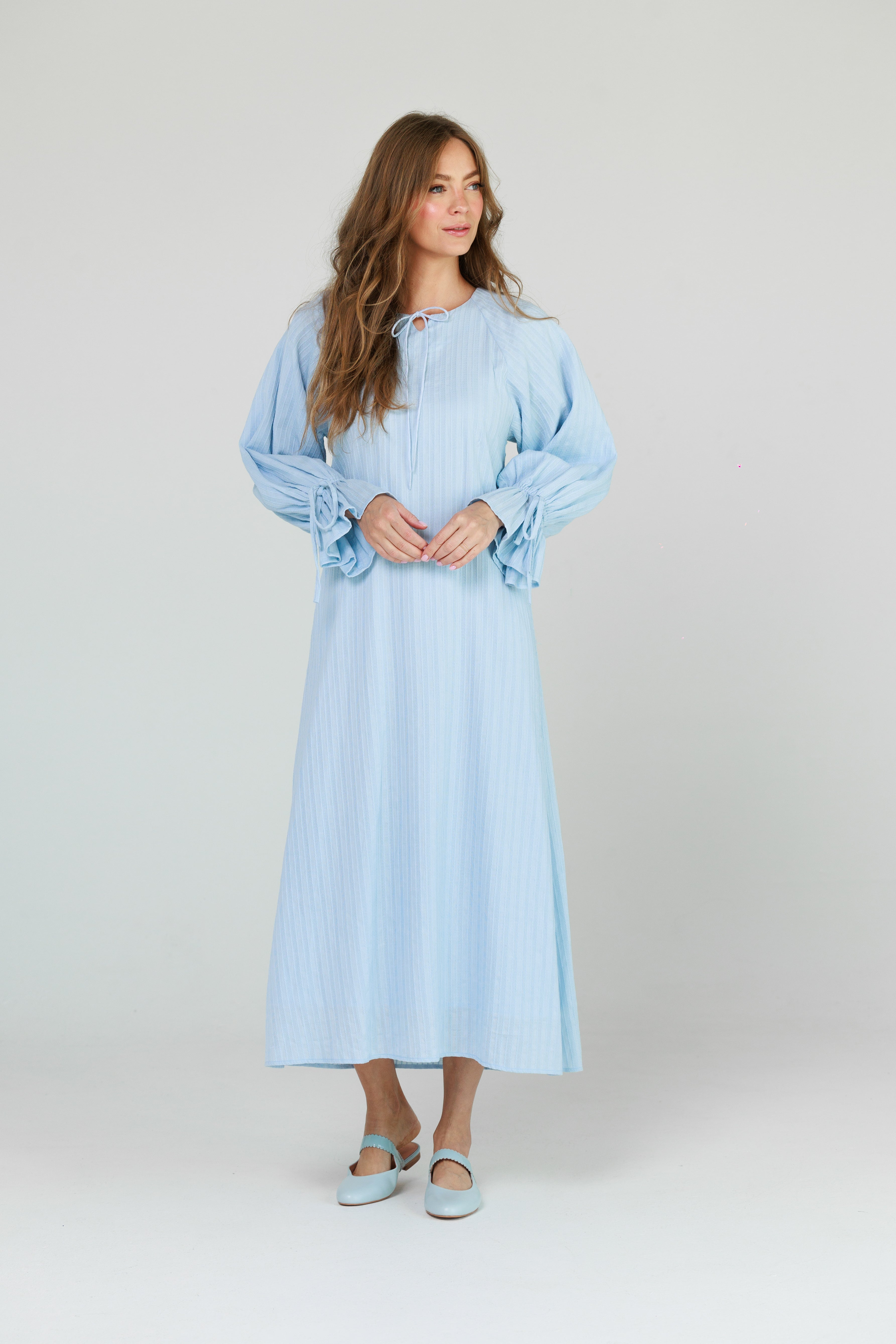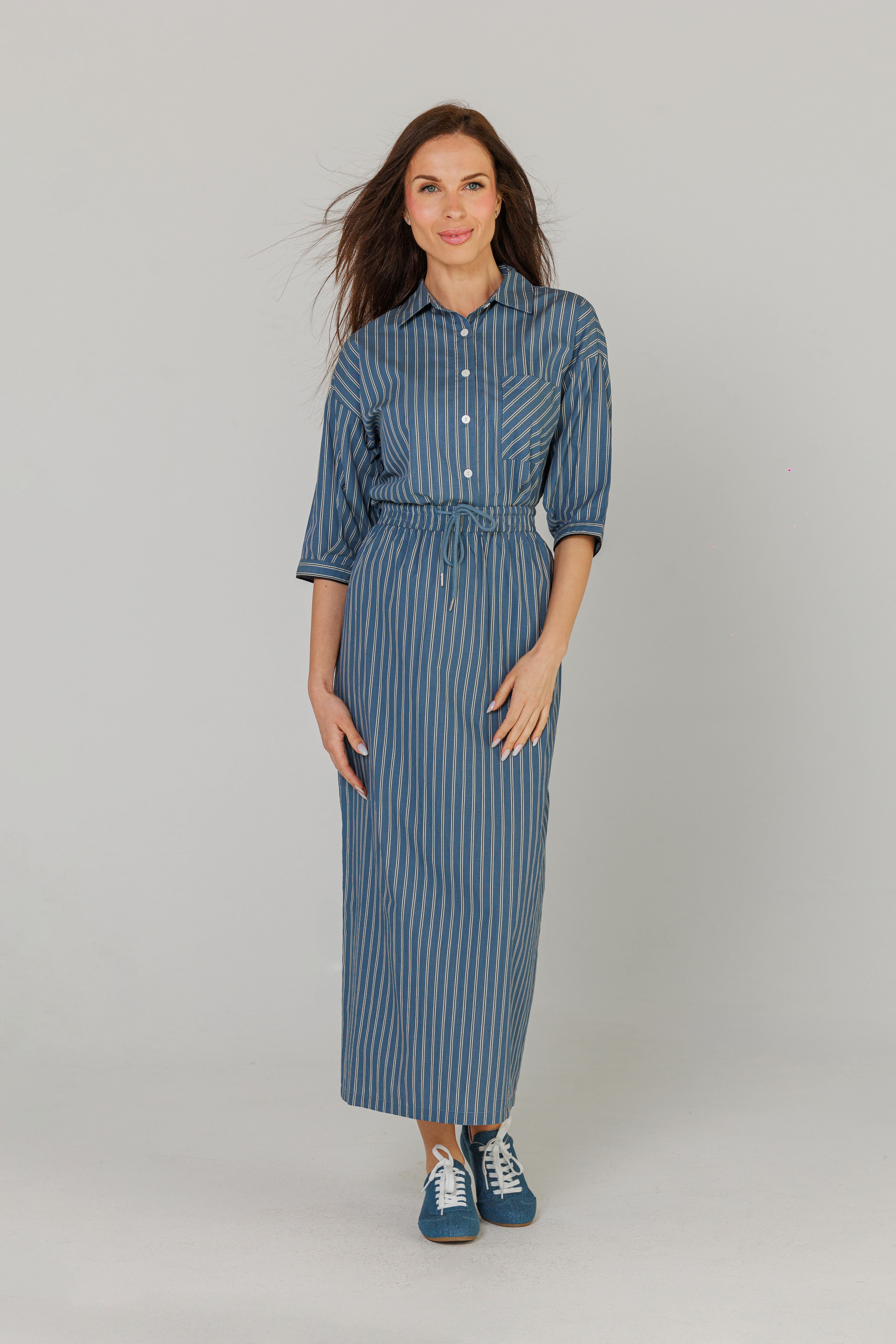 Blue Linear Cotton Maxi