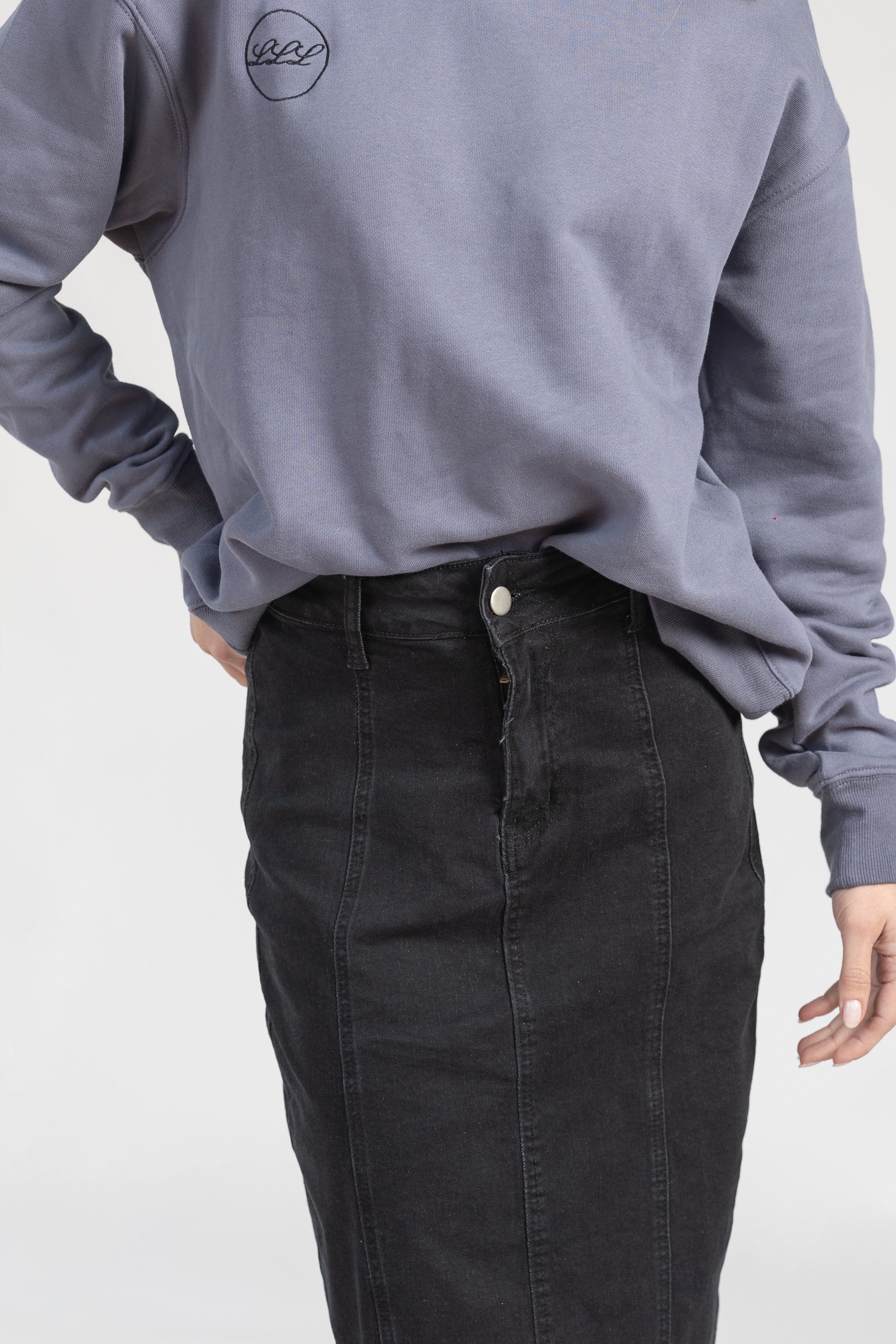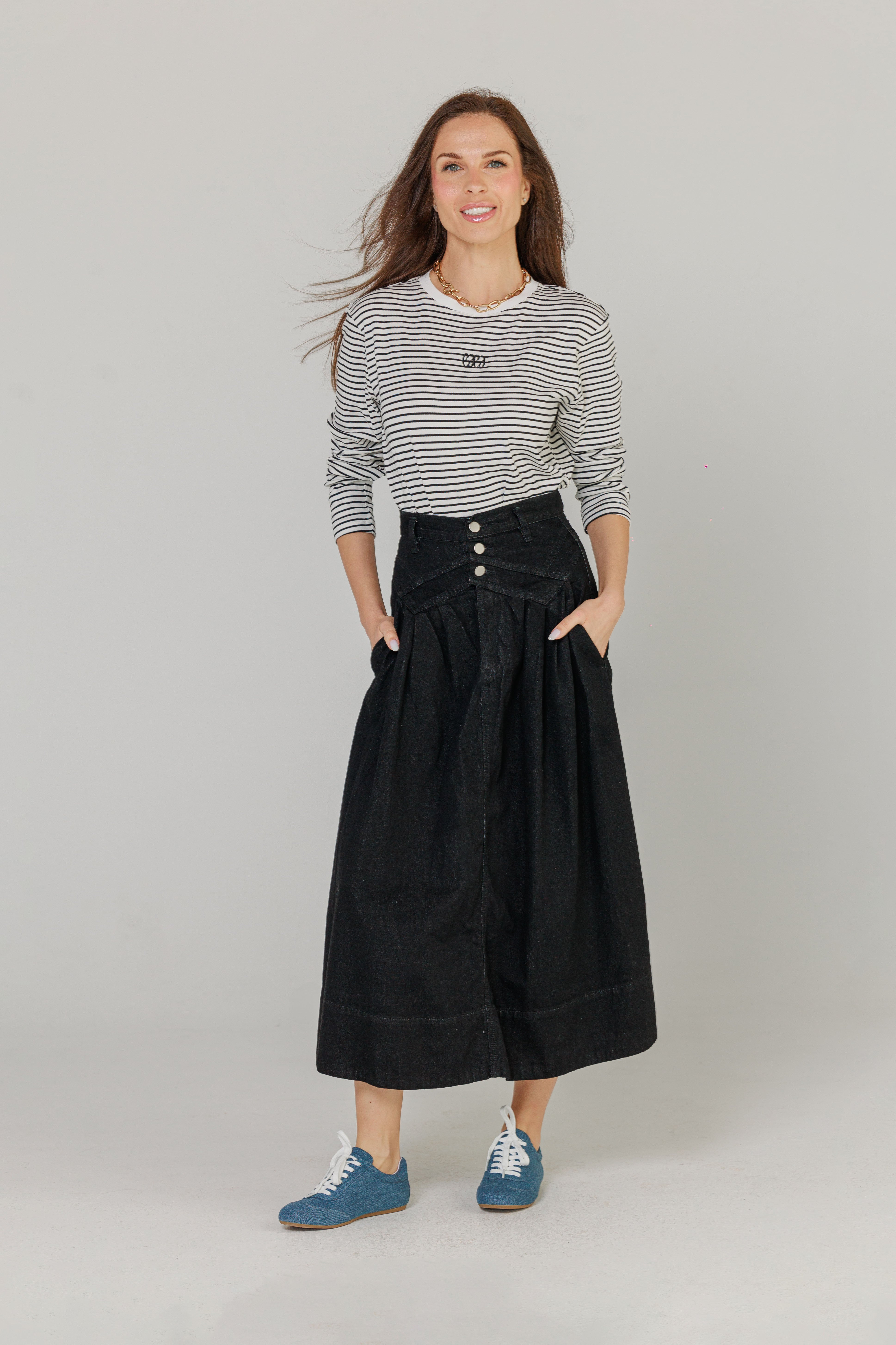 Black Panel Denim Skirt