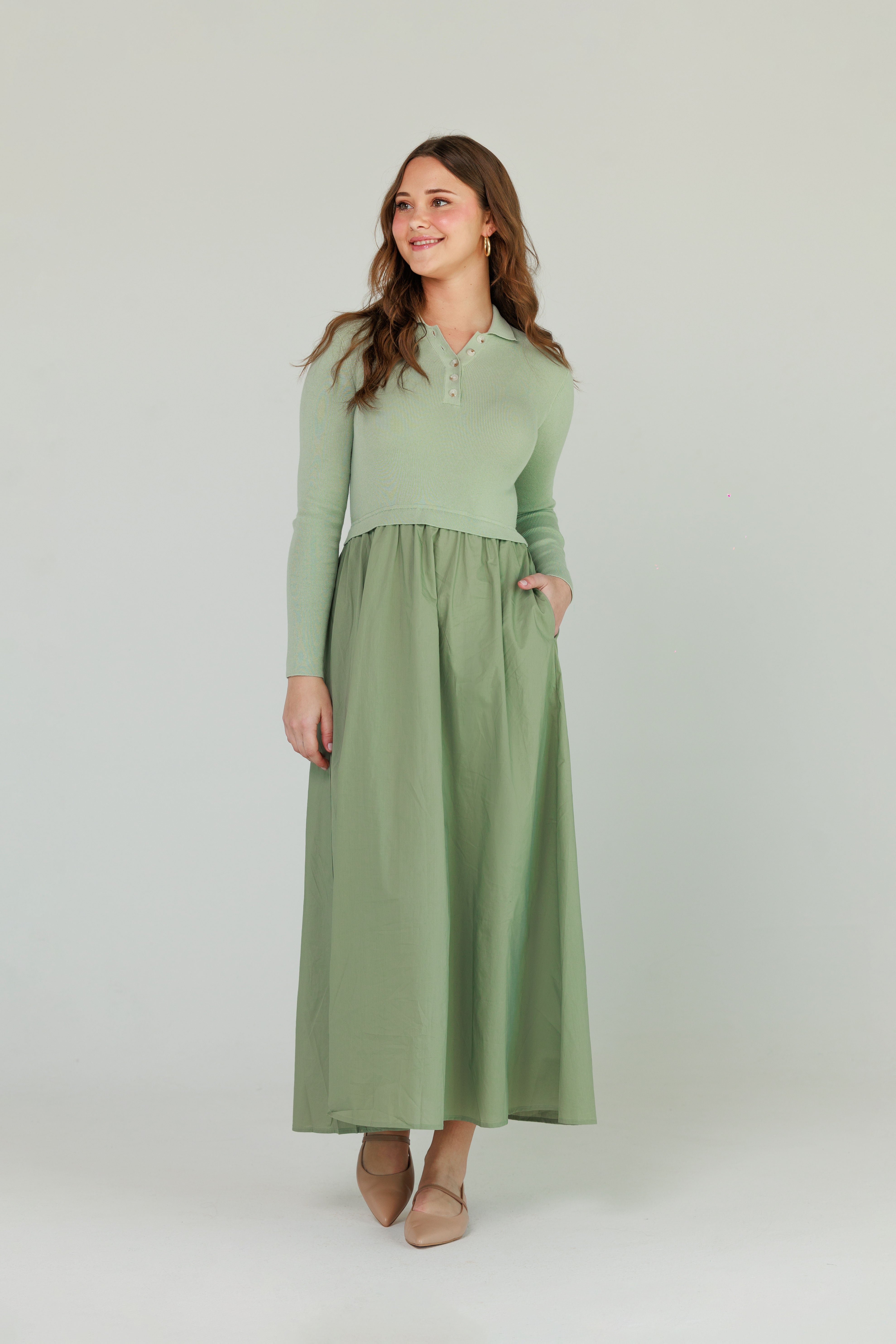 Cotton Charm Dress Sage Green