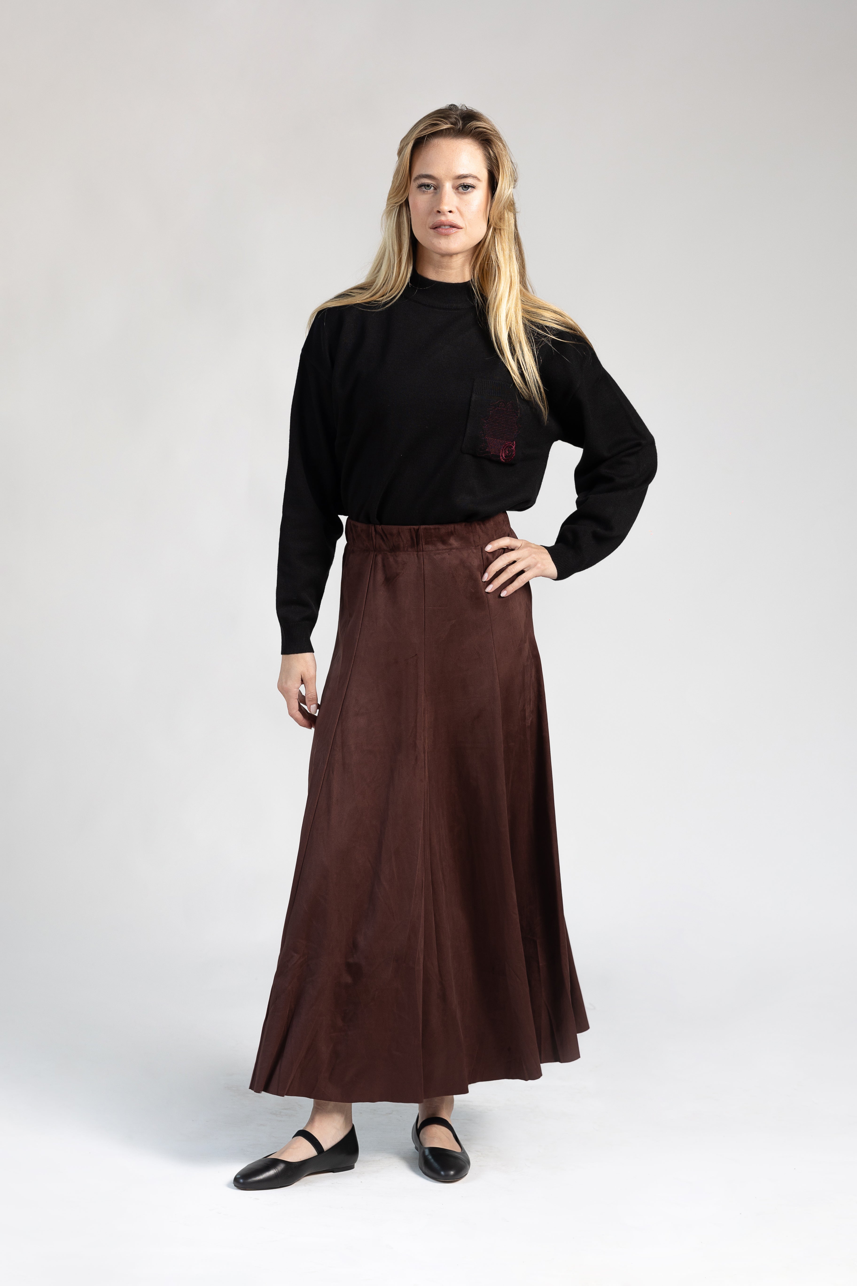 Bordeaux Suede Panel Skirt