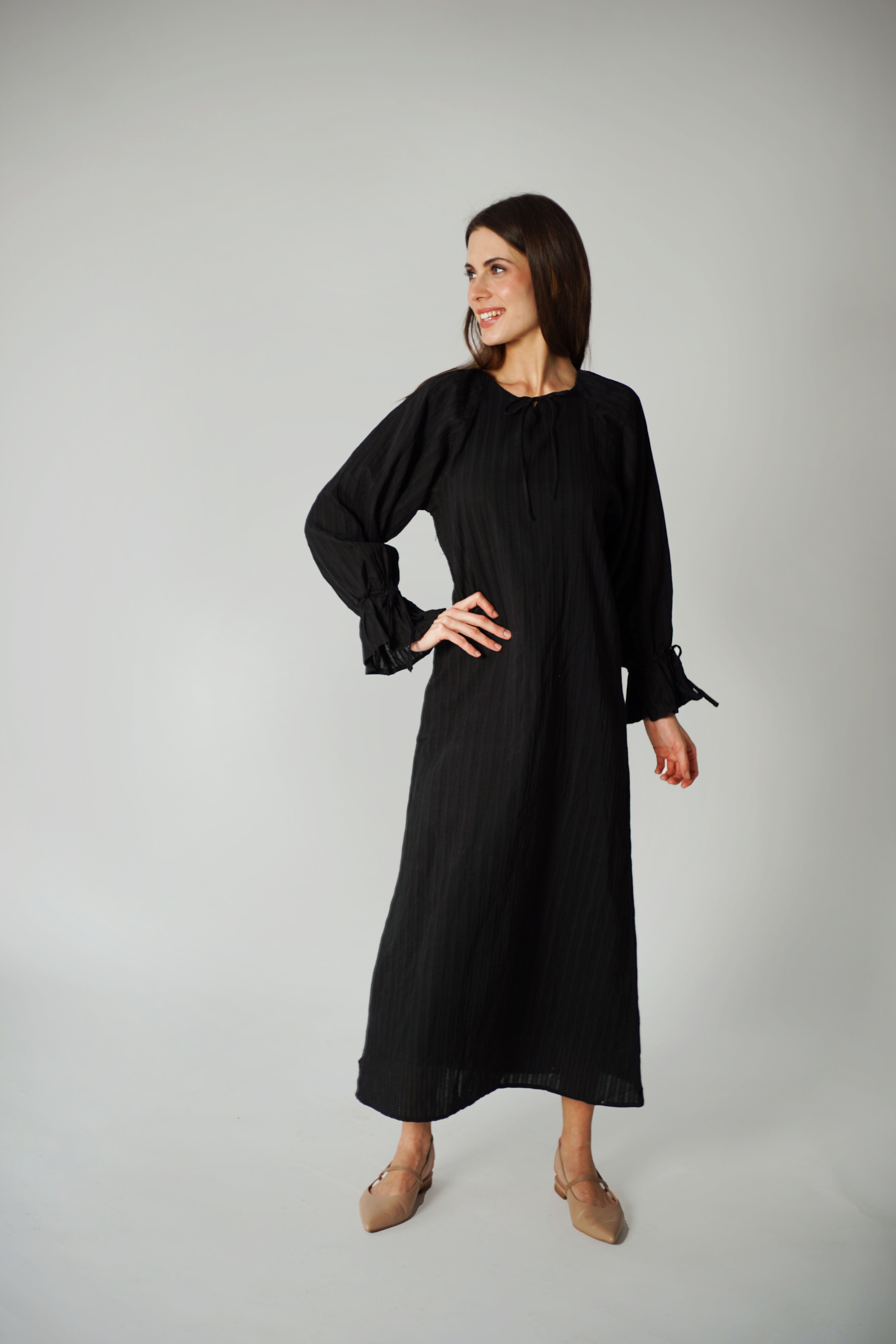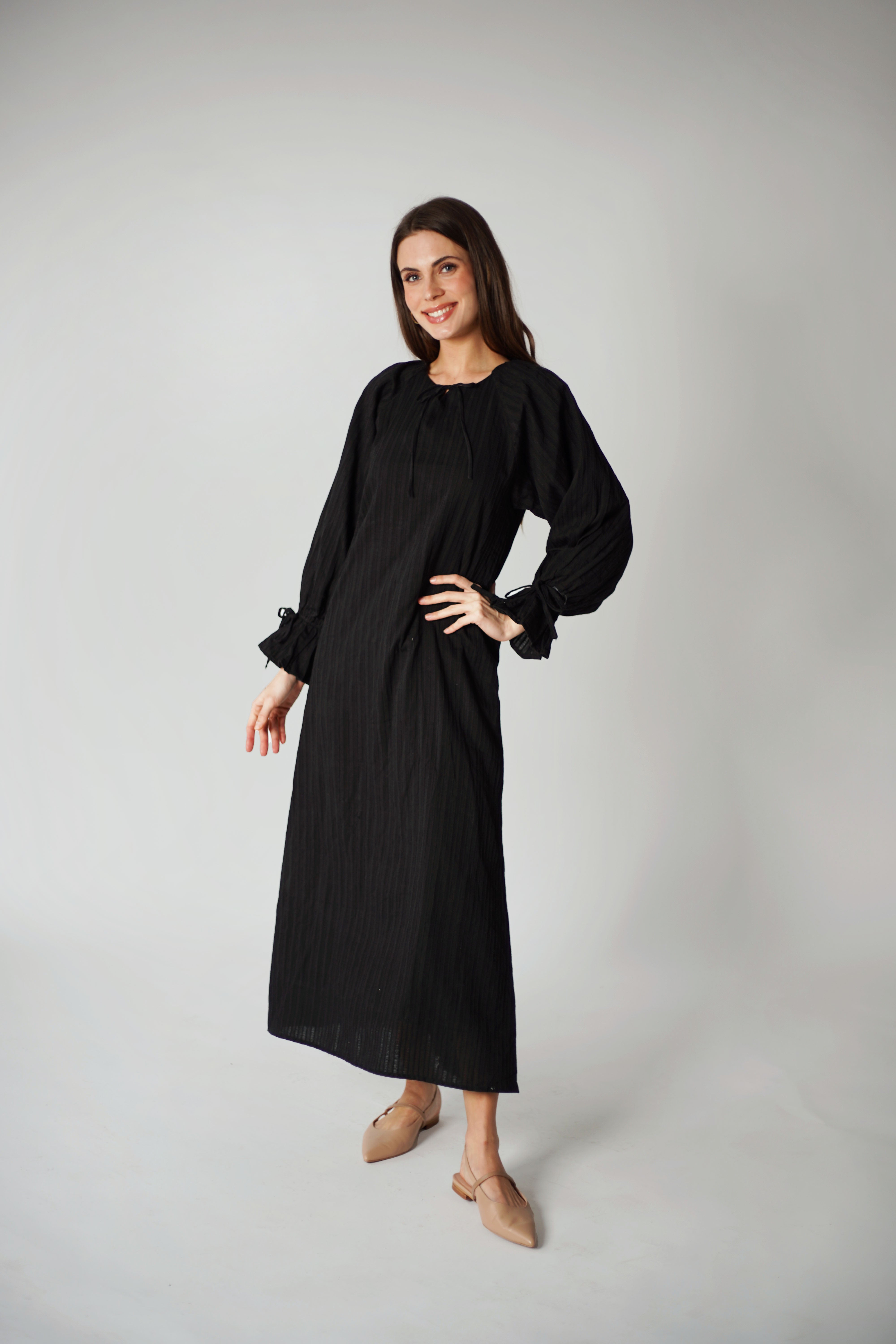 Black Linear Cotton Maxi