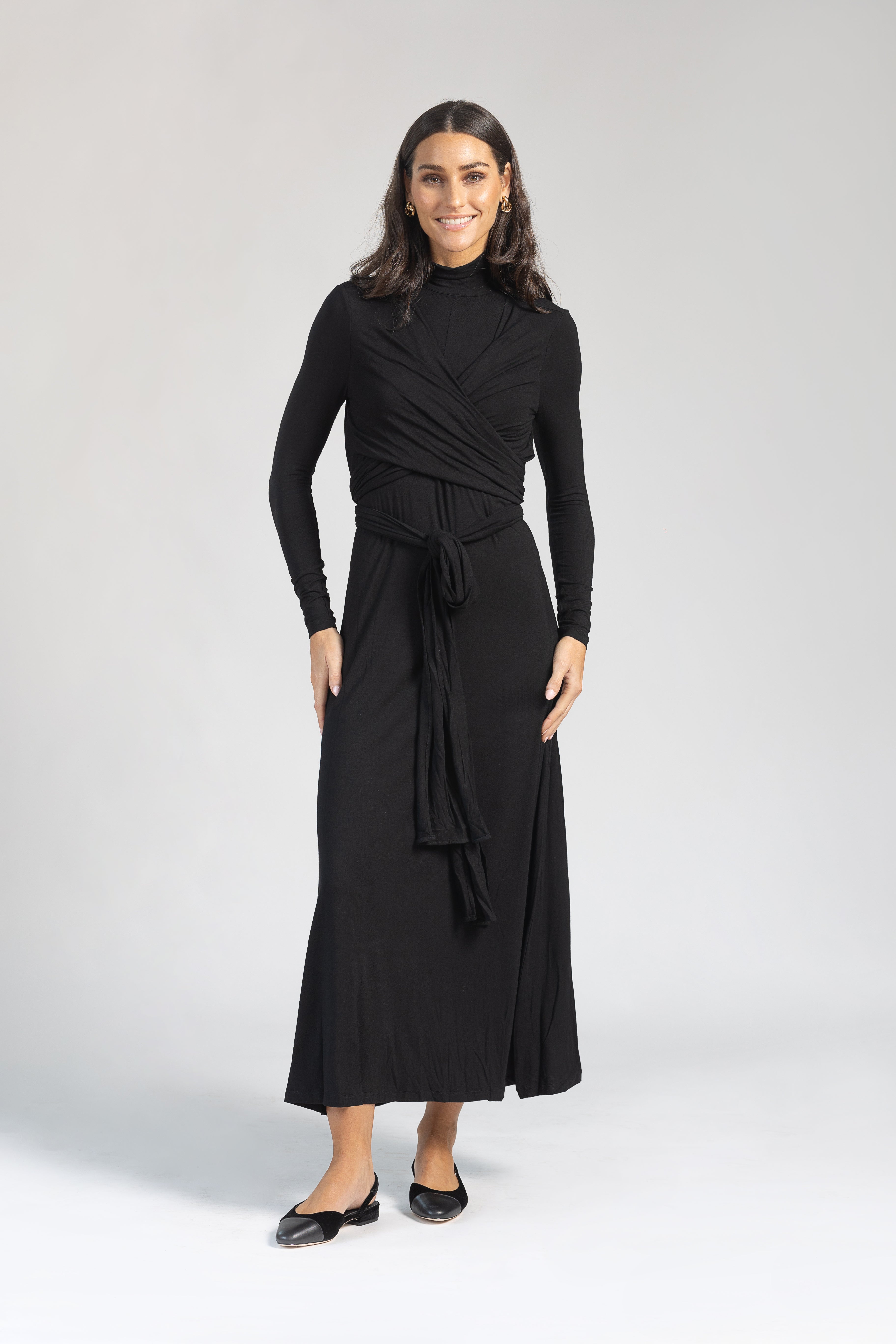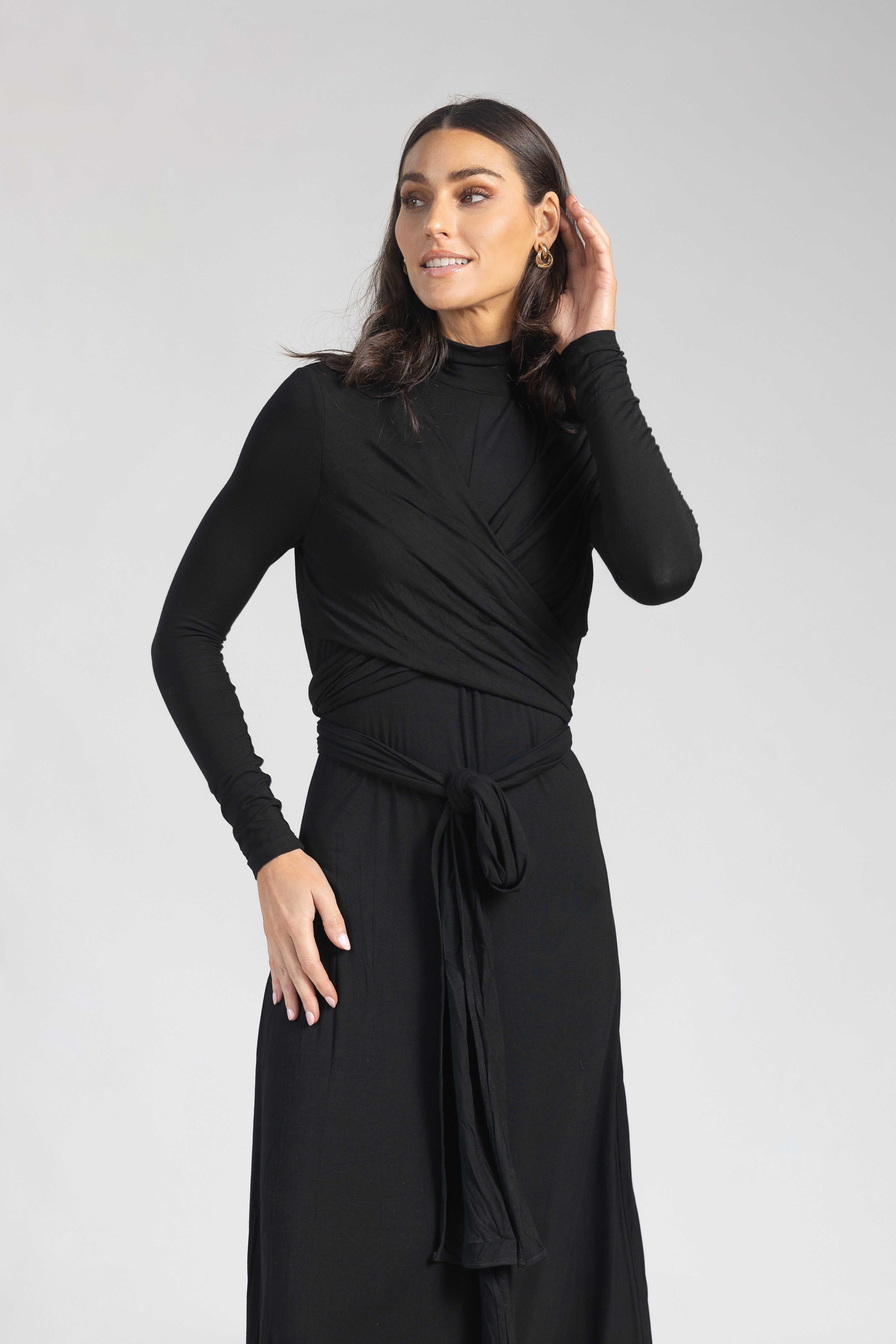Black Waisted Wrap Maxi